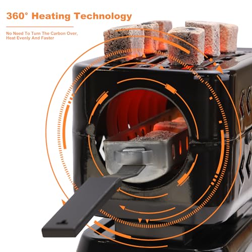 【Heating Technology】:360° heating technology making it great for lighting charcoals as well as many other practical uses. 3D Charcoal Starter no need to turn the carbon over, heat evenly and faster.