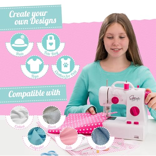 COMPLETE SEWING MACHINE SET: is perfectly designed for beginners who want to join the creative world of sewing! Made for kids to take first steps into their creativity. Textiles are a perfect way for kids to use their imagination. Help children develop the patience and skills required to create variety of pieces