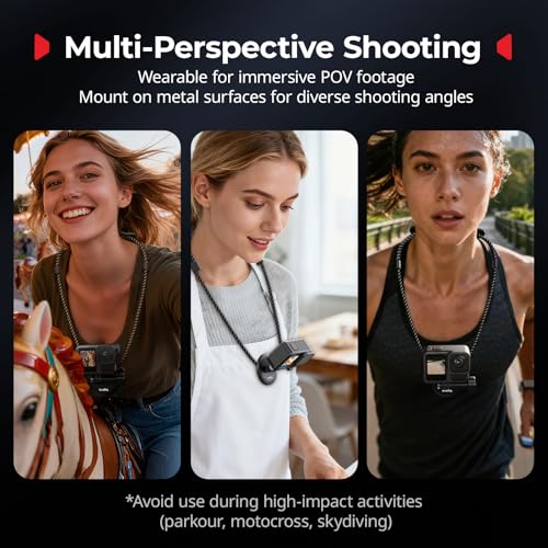- Magnetic Versatility: The magnetic neck mount allows installation on metal surfaces for versatile shooting angles; the base and bracket connect magnetically, enabling quick switching between portrait and landscape orientations. Caution: Strong magnets, handle with care to avoid pinching fingers during installation