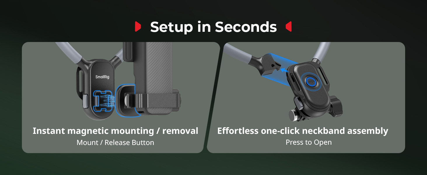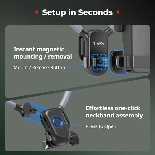 - Lightweight & Durable Material: Made of silicone, ABS plastic, and aluminum alloy, weighing just 210g (7.4oz), portable and easy to store. The upgraded SmallRig magnetic neck and body mount provides a great shooting experience.