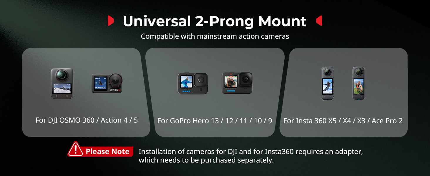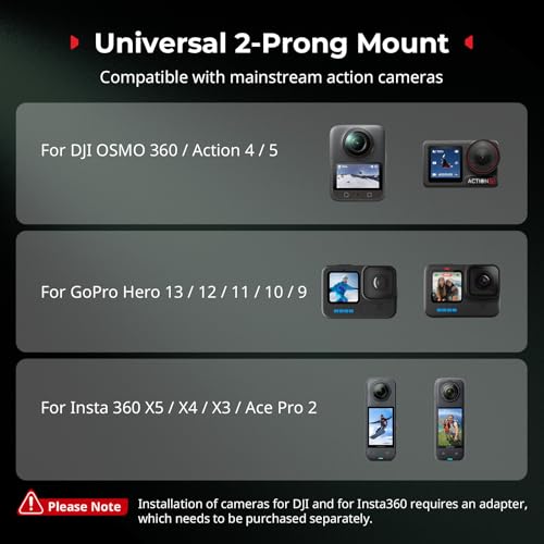 - Universal Compatibility for Action Cameras: For GoPro Hero 12/11/10/9/8/7/6/5/4, for DJI Osmo 360/Pocket 3, for DJI Action 3/4/5, for Insta360 X3/X4/X5/Go 3, for Insta 360 Ace Pro 2/3.