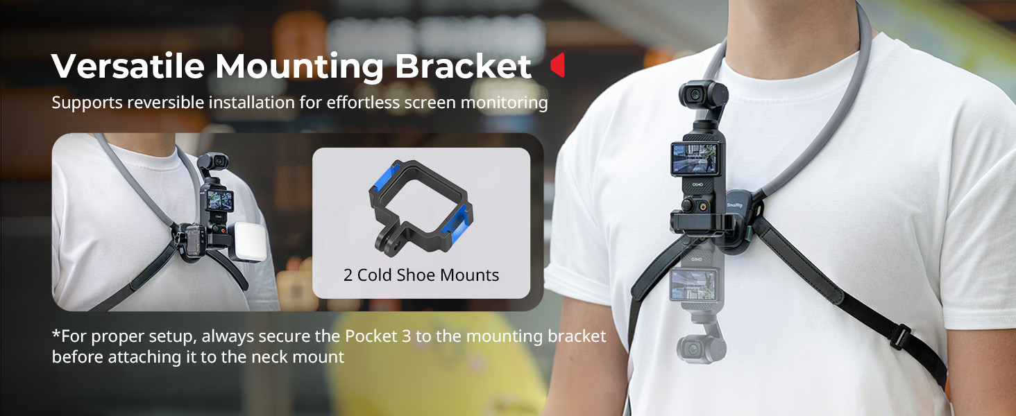 - Specially Designed for DJI Pocket 3 & POV Shots: The next-gen SmallRig neck mount kit includes an adapter bracket for DJI Pocket 3, supporting both forward and reverse installation for effortless screen monitoring. With dual cold shoe mounts for microphone and video light. Perfect for immersive POV vlogging, travel, or action scenes.