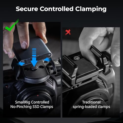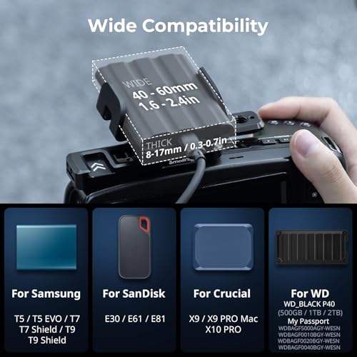 SMALLRIG Phone Mount Bracket SSD Holder, 1.6-2.4in Wide Clamping, for Samsung T5 T7 SSD, for SanDisk SSD, for MagSafe for iPhone 17/16/15/14/13/12, Universal SSD Drive Holder for Camera Cage – 5397