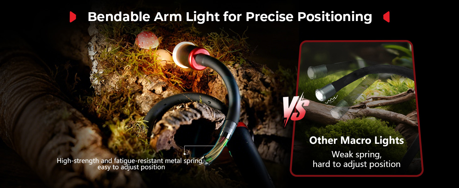 - Adjustable Beam Angle for Precision Shooting: With a high-strength, fatigue-resistant inner metal spring, easy to bend for flexible shooting. The SmallRig RM 03 macro light offers 4° to 32° beam angle adjustment for effortless and precise positioning. Take full control of your lighting setup to achieve optimal illumination for your subject and realize modular lighting for macro photography.