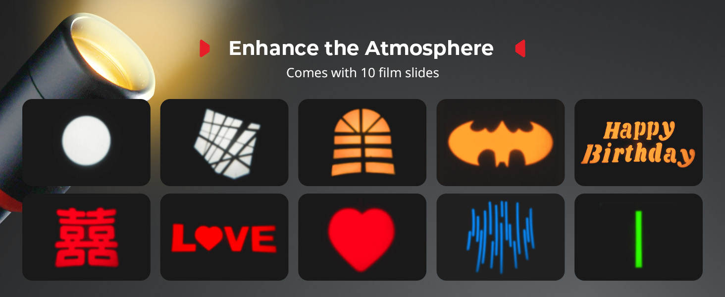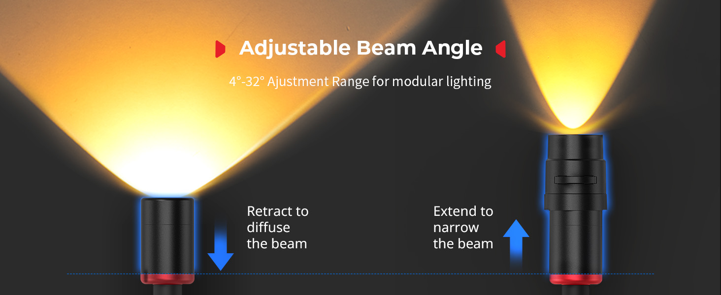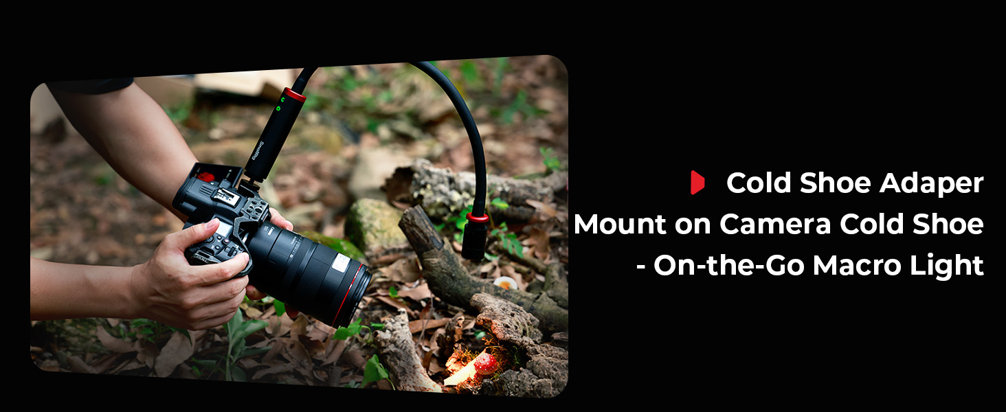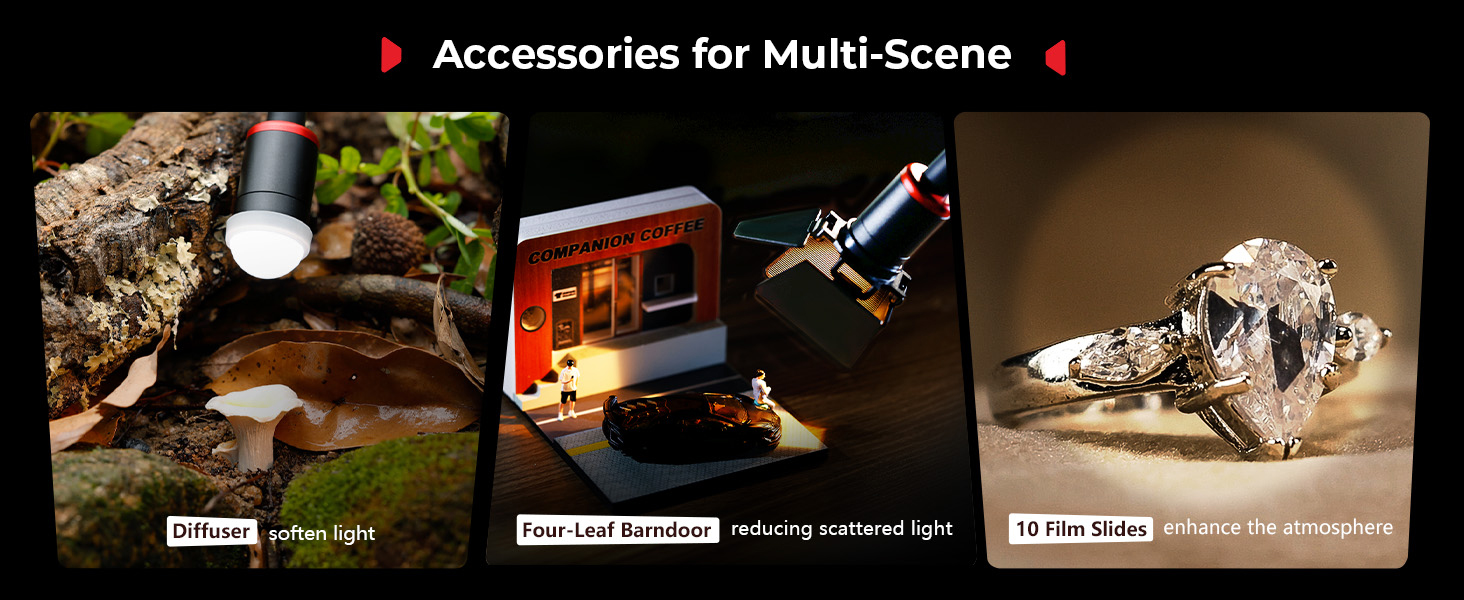 Key Feature 2 | Precise Beam Control | Adjustable Brightness Levels | 3 Cold Shoe Mounts | 21 light effects | with OLED Screen | Magnetic Mounting | |