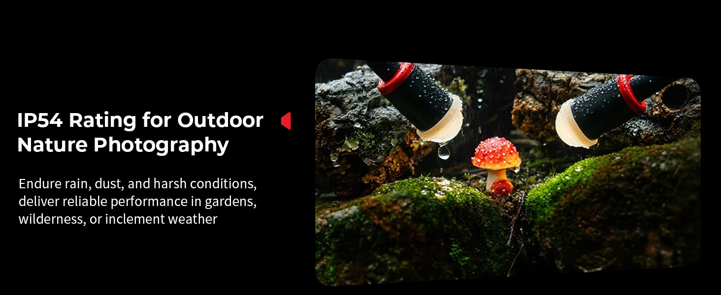 - IP54 Weather Resistance for Outdoor Durability: Specially designed to endure rain, dust, and harsh conditions, the SmallRig RM 03 macro light delivers reliable performance in gardens, wilderness, or inclement weather—no additional protection needed. Only 10.6oz, compact and lightweight, easy to carry, great for nature macro photography, such as plants and insects.