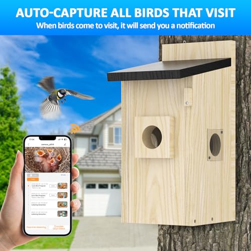 【Capture Birds Clearly with 4MP Night Vision】: When the smart birdhouse detects bird activity, you'll get an instant notification on your phone. This birdhouse camera has a 4MP camera, built-in microphone, and night vision lamp so that you can observe birds' appearance and behavior anytime with your family online, regardless of day or night, and even listen to their songs.