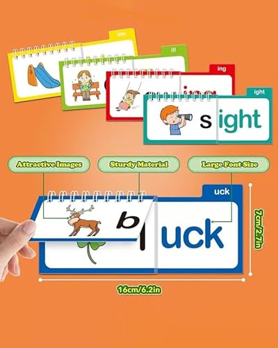 - Word Family Flash Cards Function – Each flip book doubles as a set of word family flash cards, providing a hands-on, engaging way for children to practice phonics while enhancing vocabulary and strengthening spelling skills