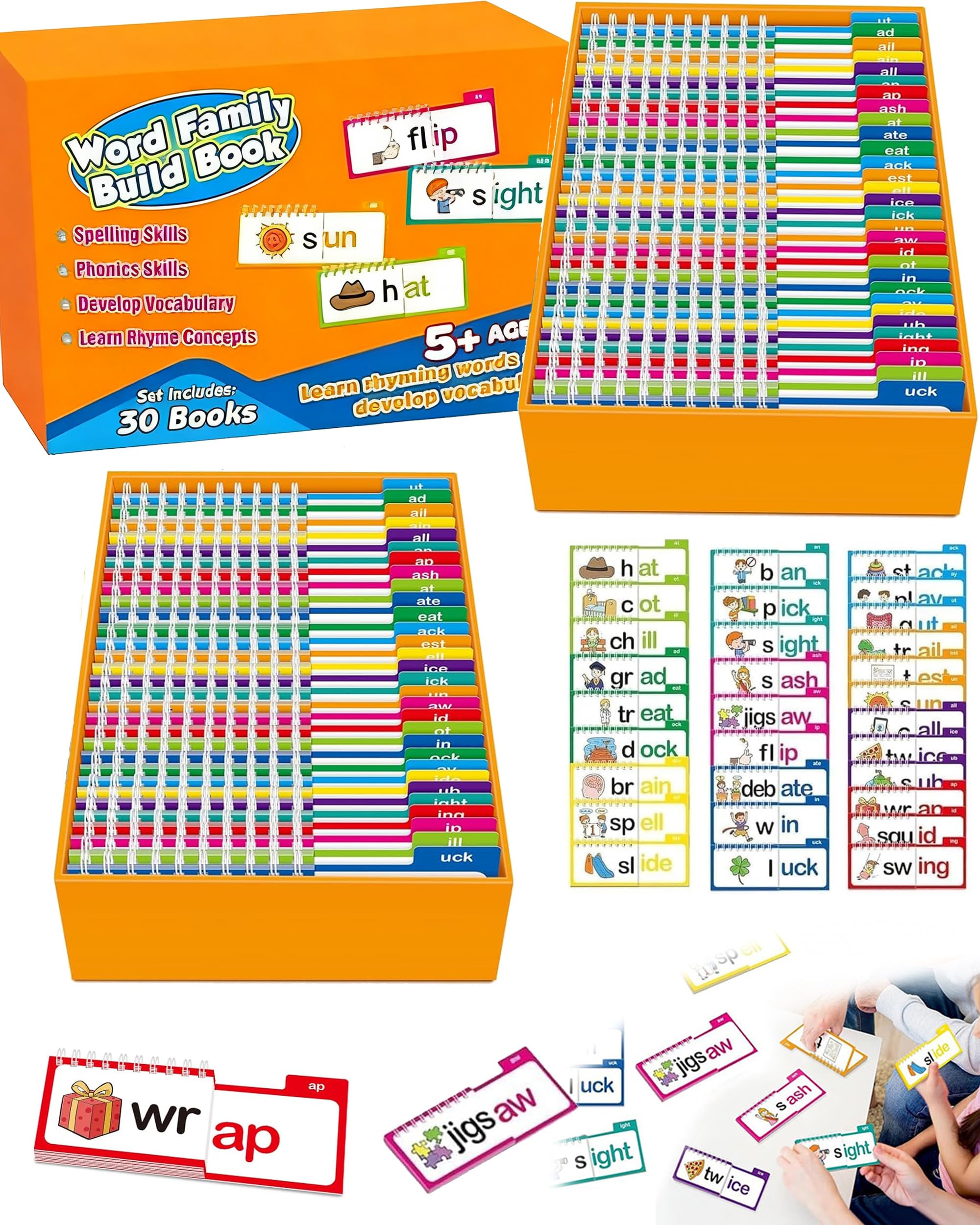 This set of 30 word family flip books helps kids master phonics, sight words, and rhyming through fun, hands-on learning. Durable and engaging, these smart in read and rhyme flip books make reading practice playful, educational, and confidence-building.