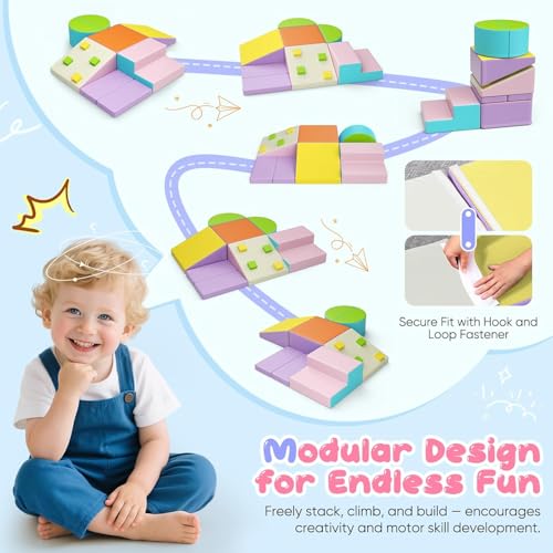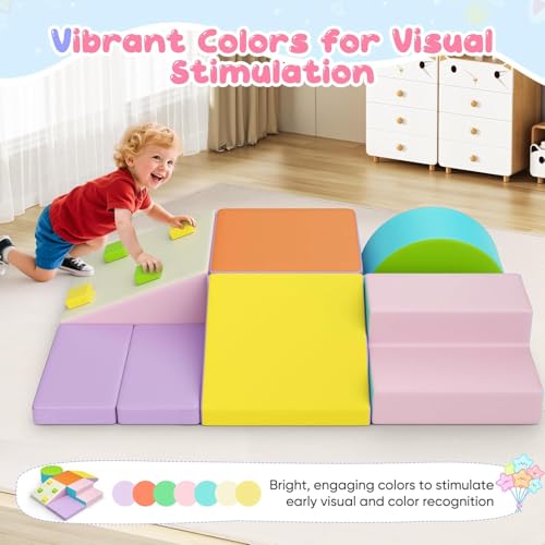 Soft Play Foam Building Blocks for Children,Climbing Toys for Toddlers from 1-3 Years (Macaron)