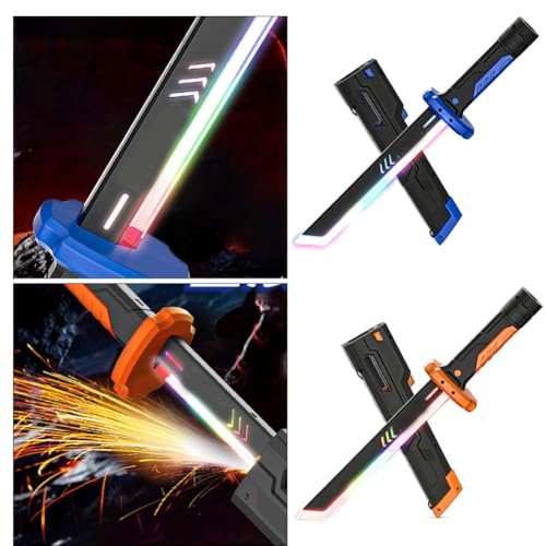 Sparkblade Sword with Sparks,LED Light and Spray Effect,Spark Blade Sword,Light up Swords Perfect for Cosplay, Halloween,Party (Blue+Orange)