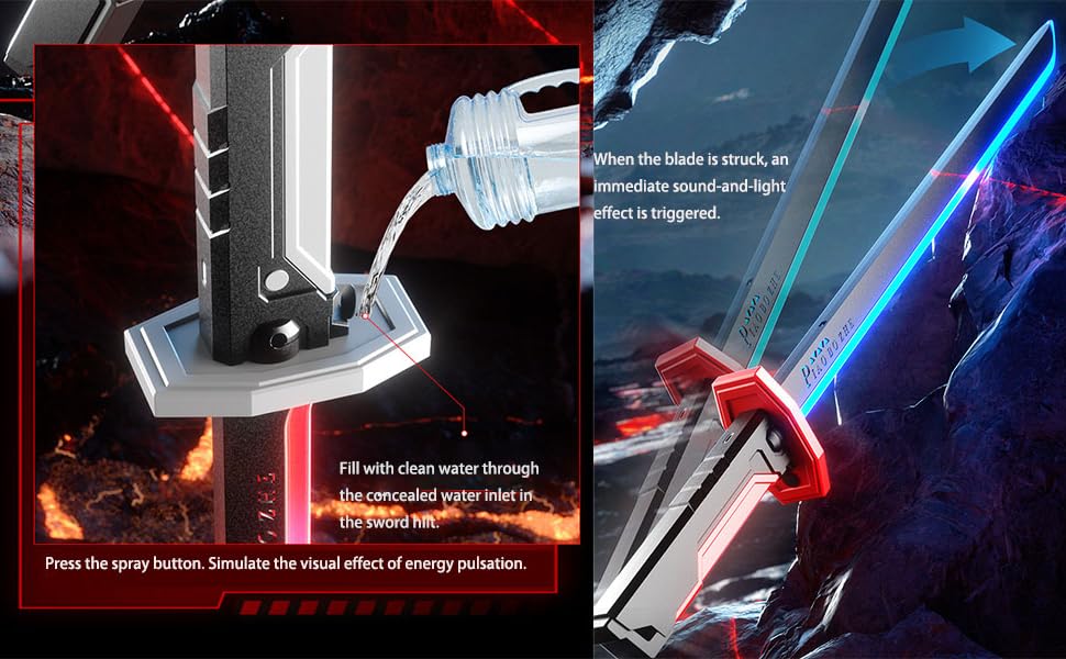 - 【Dazzling Sparkblade with Smoke & Light Effects】Unleash the dynamic Sparkblade Sword with realistic mist! Our light-up katana combines brilliant flowing smoke for an immersive energy sword