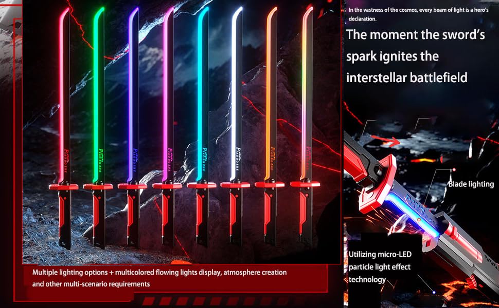 - 【Auto-Eject Blade with One-Hand Control】Experience cinematic impact with automatic blade ejection! Just press the sheath switch for instant unsheathing like a true cyber-swordsman. This LED katana adds drama to entrances, stage performances, and themed conventions