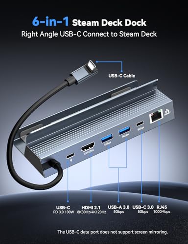 Steam Deck Dock,6-IN-1 Steam Deck Docking Station with 4K@120 2K144Hz HDMI 2.1, 1Gbps Gigabit RJ45, USB A & USB C 3.0 and 100W PD 3.0 Fast Charging,Steam Deck Dock Compatible with Legion Go/MSI Claw