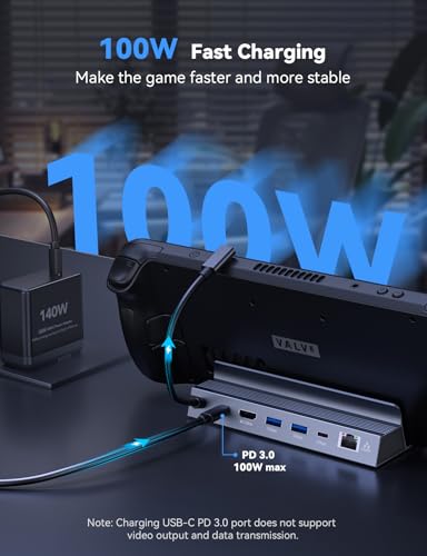 - PD3.0 100W USB C Fast Charging: The Docking Station supports up to 100W of power to ensure your Type-C gaming devices are charged at maximum speed. Continuous charging for uninterrupted gaming fun. Note: Steam Deck has a maximum charging power of 45W.