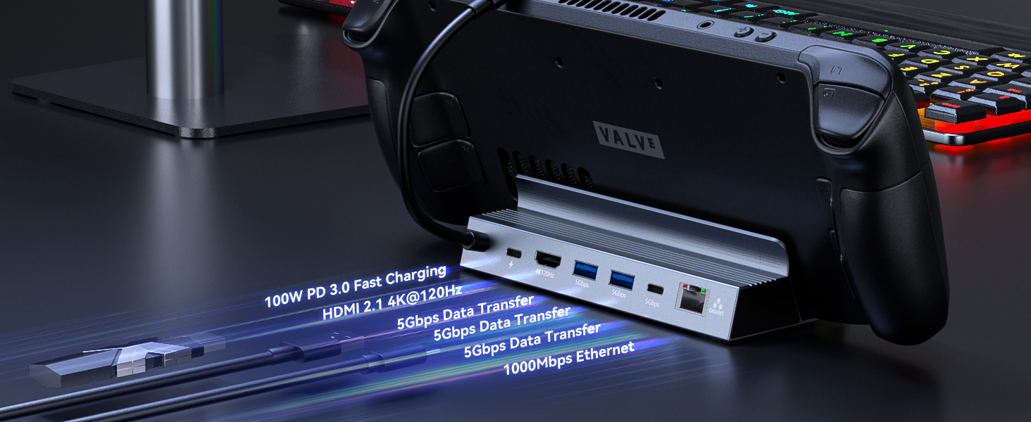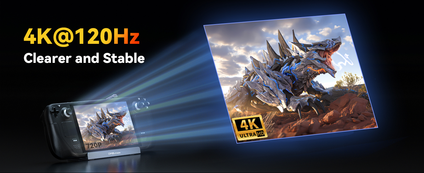 - 4K@120Hz HDMI 2.1 Output:The Deck Dock supports Max 8K@30Hz, 4K@120Hz or 2K@144Hz HDMI 2.1 output, enjoy a clear and smooth visual experience for immersive gaming.