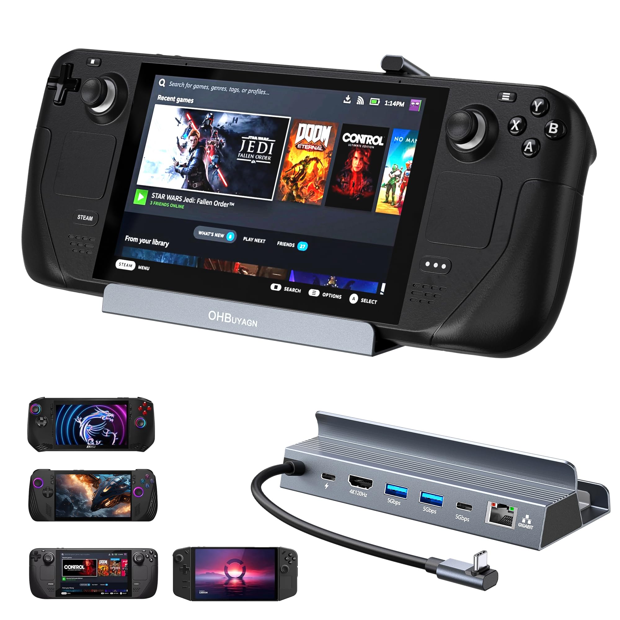 - WIDE COMPATIBILITY: Our Docking Station offers a wide range of compatibility and supports devices such as Steam Deck/Legion go/MSI Claw. The silicone pad on the bottom provides stability, slip resistance and optimised viewing angles for a better gaming experience.
