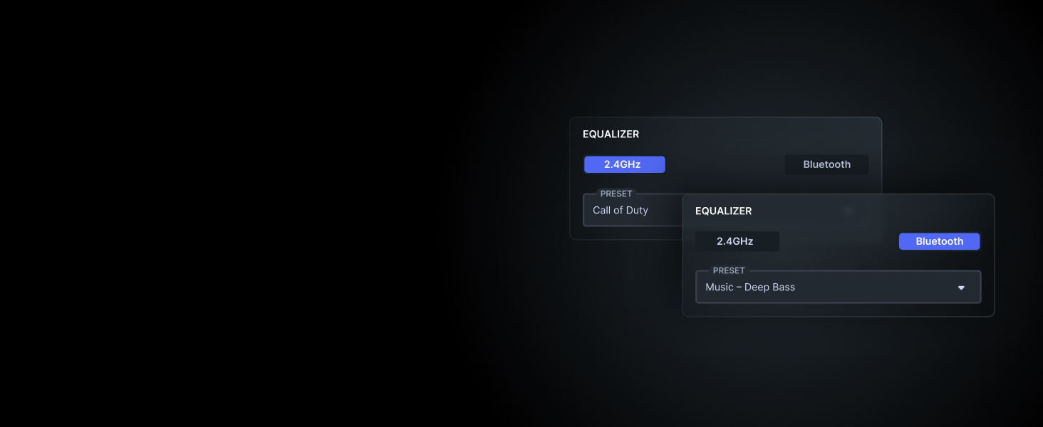 Hear footsteps better on the 2.4GHz connection; switching to Bluetooth turns on your music preset.