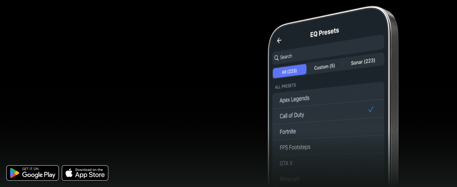 PRESETS FOR CoD, FORTNITE, AND MORE – Control your audio using the mobile app to hear footsteps better in game. Unlock total audio control with 200+ game presets in the Arctis Companion App.