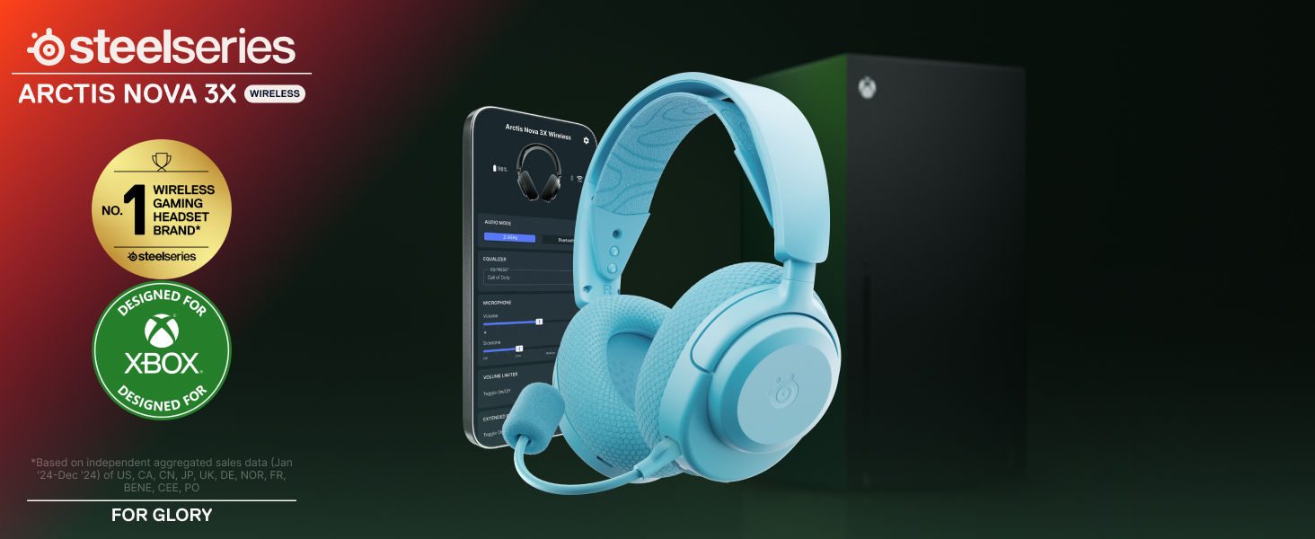 SteelSeries Arctis Nova 3X Wireless Xbox Gaming Headset – Mobile App Control – 40 HR Battery – Neodymium Magnetic Drivers – 2.4GHz/Bluetooth – Detachable Mic – Xbox, PS5, PC – Aqua