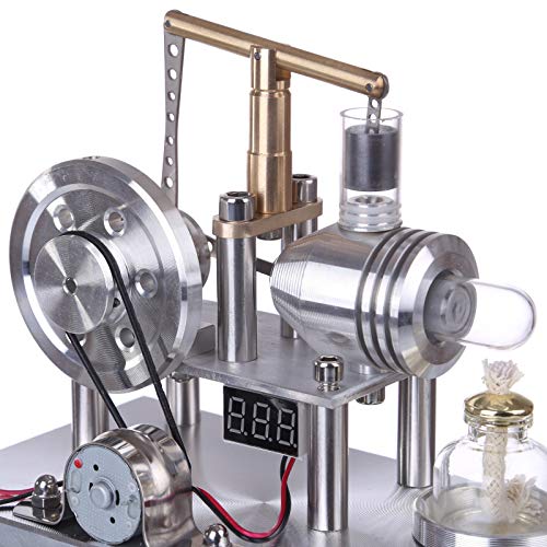 ENJOMOR Custom Balance Type Hot Air Stirling Engine Generator Model Science Experiment Educational Toy with Voltage Digital Display Meter and LED Bulb