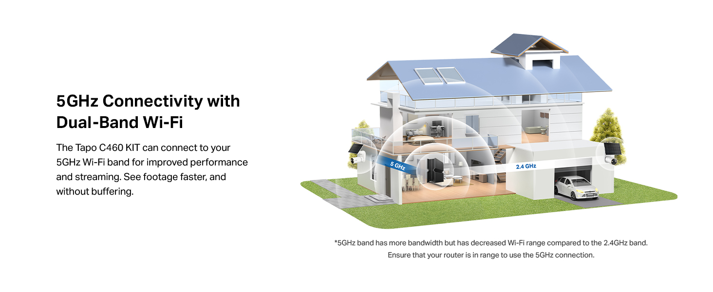 - ๐๐๐ฎ๐น-๐๐ฎ๐ป๐ฑ ๐ช๐ถ๐๐ถ ๐ณ๐ผ๐ฟ ๐๐ฎ๐ด-๐๐ฟ๐ฒ๐ฒ ๐ฆ๐๐ฟ๐ฒ๐ฎ๐บ๐ถ๐ป๐ด โ Enjoy seamless 4K streaming with the security camera outdoor wireless; Connect to the 5GHz Wi-Fi band for faster performance, reduced interference, and smooth real-time footage without buffering