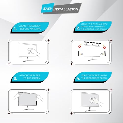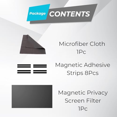 - Package Contents: 1 x 21.5" Privacy Screen, 8 x Magnetic Tape, 1 x Cleaning Cloth