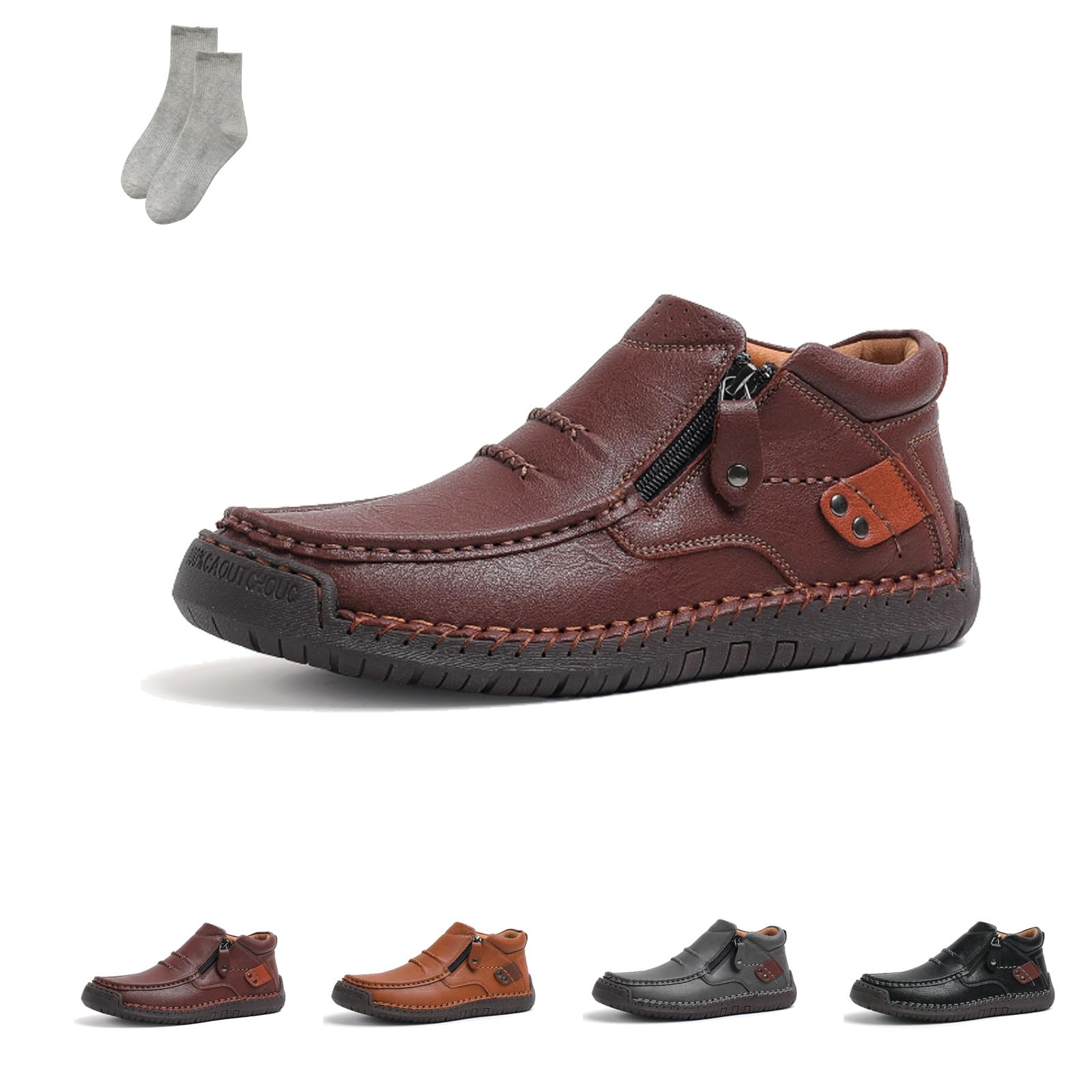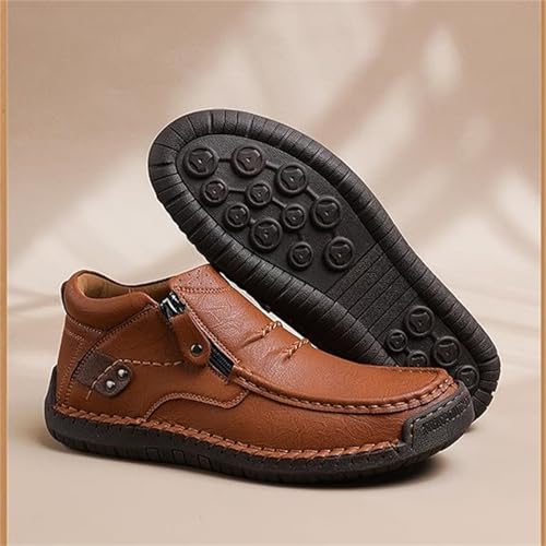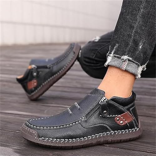 The First Young Shoes Men, Handmade Premium Leather Slip On Driving Boots, for Leisure,Walking, Office