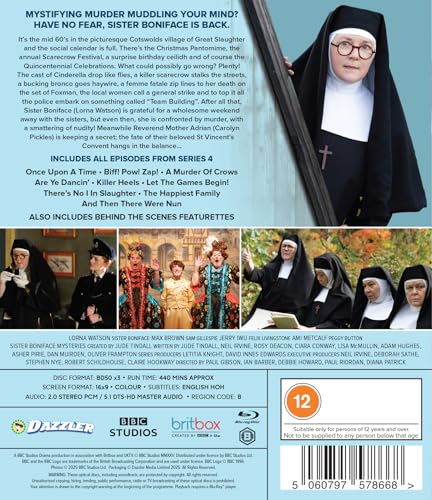 The cast of Cinderella drop like flies, a killer scarecrow stalks the streets, a bucking bronco goes haywire, a femme fatale zip lines to her death on the set of Foxman, the local women call a general strike and to top it all the police embark on something called “Team Building”. After all that, Sister Boniface (Lorna Watson) is grateful for a wholesome weekend away with the sisters, but even then, she is confronted by murder, with a smattering of nudity! Meanwhile Reverend Mother Adrian (Carolyn Pickles) is keeping a secret; the fate of their beloved St Vincent’s Convent hangs in the balance…