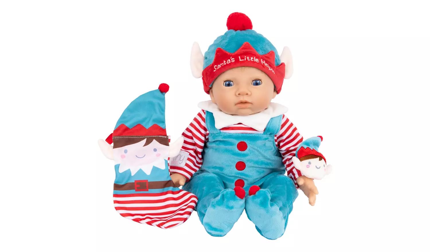 - Outfit is made with soft, high-quality fabrics for lasting play. Includes elf outfit, matching hat, wrist rattle, stocking and themed storybook for extra festive fun.