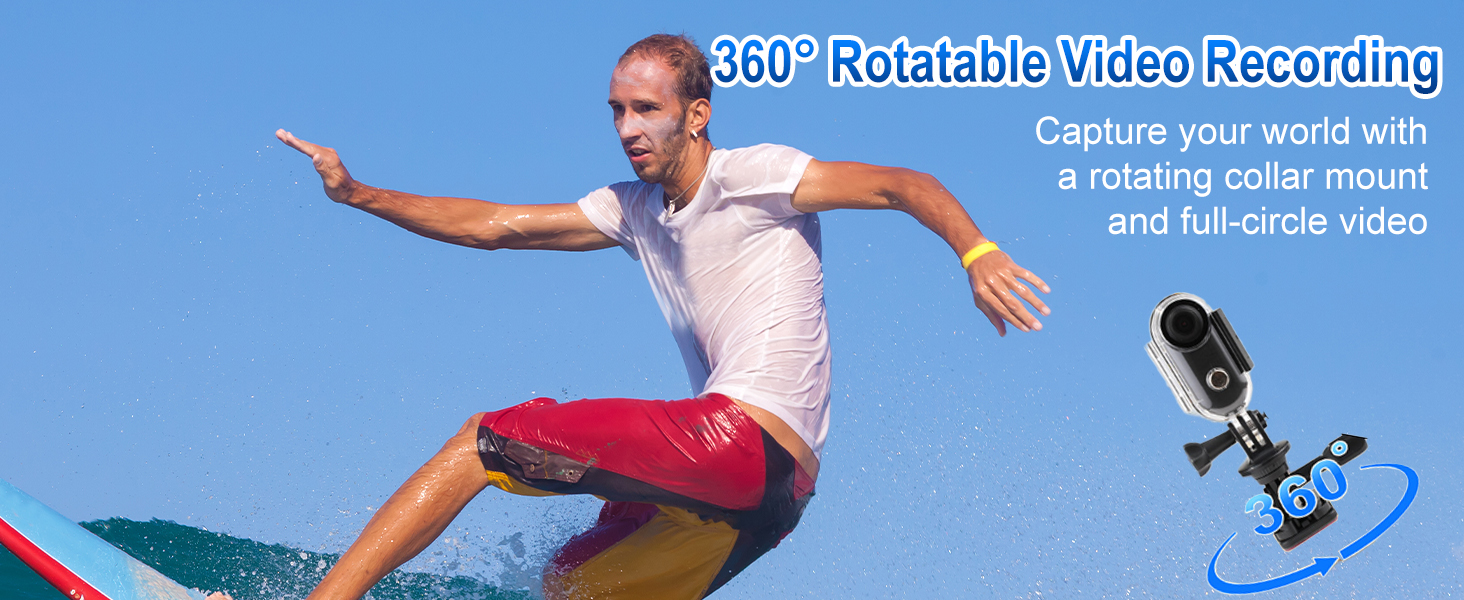 【Ultra-compact 1080P Mini Action Camera】: This wearable camera comes with a magnetic strap and 360° rotating spring clip, which can be easily attached to clothing, helmets or gear, allowing you to free your hands and easily capture wonderful moments when cycling, hiking or taking your pet on adventures. The included waterproof housing is rainproof, splashproof and dustproof, making it an ideal choice for fishing, motorcycle riding or extreme outdoor activities.