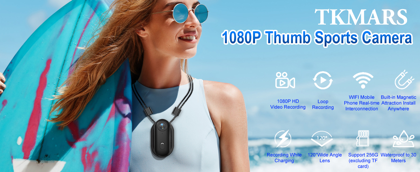 TKMARS Mini Thumb Action Camera 120°Wide Angle Lens 1080P Mini Body Camera with Magnetic Lanyard, 360°Clip, Hands-Free POV Recording, Helmet Cam for Cycling, Motorcycle
