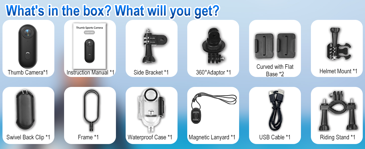 【Thumb-sized Camera】: This mini action camera features a lightweight pocket-sized design that can be carried with you.Capture the wonderful moments of life in stunning 1080p resolution with a 120°wide-angle lens, and enjoy flexible storage options (supports up to 256GB microSD card).