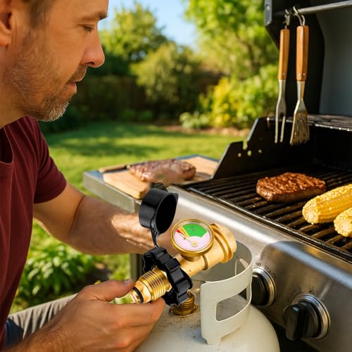 Enhanced Security: The propane tank gauge is equipped with an automatic shut-off function and a sensitive leak detector, ensuring that gas flow is immediately stopped upon detecting a leak, providing reliable safety protection when using propane.