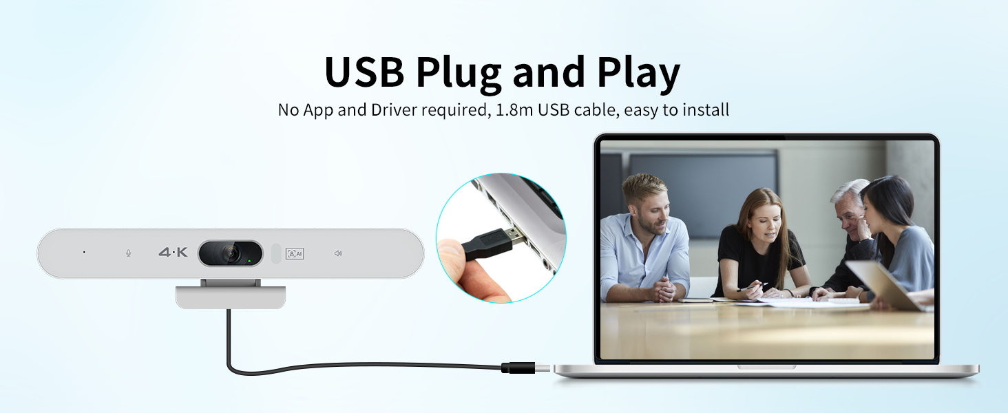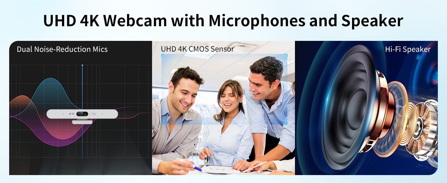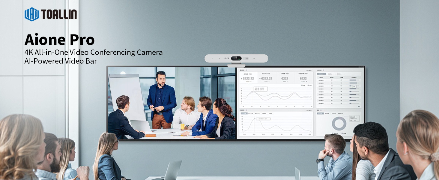 【UHD 4K Webcam with Mic and Speaker】TOALLIN Aione-Pro Video Bar equipped with an Ultra HD 4K resolution lens, 1/3'' CMOS sensor, provides true UHD images and videos up to 3840*2160&30fps. Built-in 2 omnidirectional noise-canceling microphones array and a loud Hi-Fi speaker. 3-in-1 designed provides you one-stop video conferencing experience.