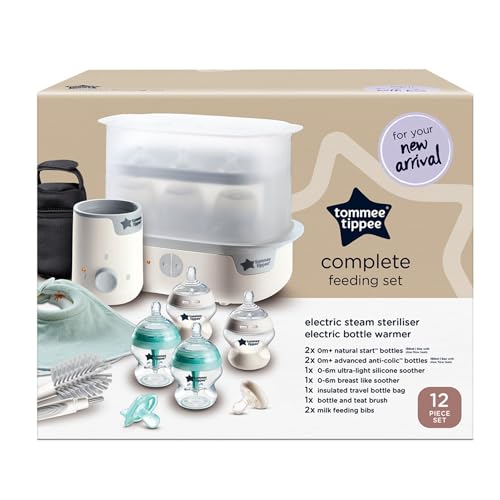 Tommee Tippee Complete Feeding Set, White, with Electric Steam Steriliser, Newborn Self-Sterilising Baby Bottles and Easiwarm Bottle Warmer, Essential for Parents with Newborns