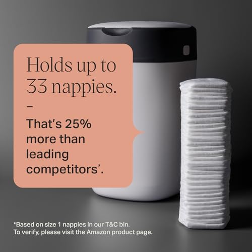 Holds 25% more nappies than leading competitors***: This compact nappy bin holds up to 33 nappies, so you always have protection from odours and can dispose of dirty nappies easily
