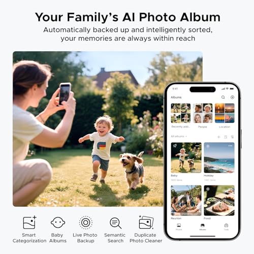 AI automatically organizes photos by faces, scenes, and locations, removes duplicates, and creates personalized baby growth albums—so all precious moments are effortlessly preserved and easily shareable with family via QR code or link.