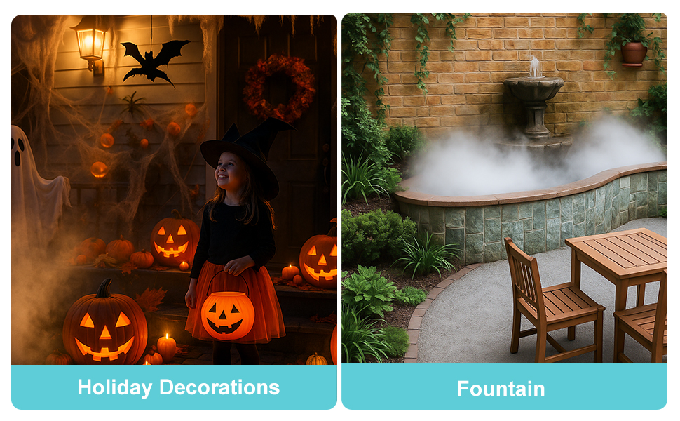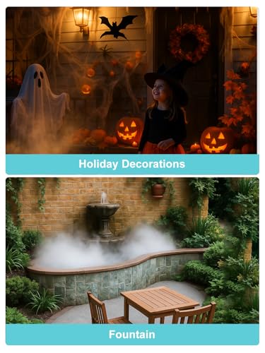 【WIDE APPLICATION 】 The mist maker humidifier not only can be used for Christmas Halloween decoration, creating a special atmosphere for a stage, or artificial landscape; but also can be put in your pond, pool, rockery, or fish tank to create a natural mist or provide proper humidity for greenhouse vegetable humidification, buffet food preservation. In addition, you can also DIY your own sonic sprayer into a humidifier