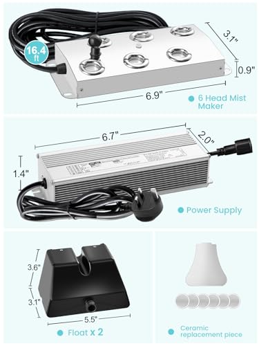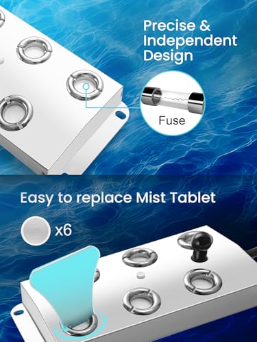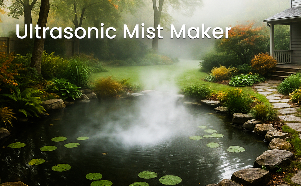 【UPGRADED & INDEPENDENT DESIGN 】 Each nozzle of this mist maker fogger has an independent fuse. If one of those does not work, it will not cause the entire product to fail. The pond fogger utilizes 1.7MH electronic over-frequency oscillation to produce the mist and water spray. Just put Fogger in the water, and plug it in then the mist appears. To better showcase the atomizer's effect, it is recommended to use clean water (6 atomizer sheets are included for replacement)