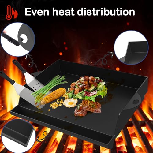 - [ Even Cooking ] Universal plancha grill plate boasts excellent heat conductivity, enabling rapid and even heat distribution to ensure all parts of the food are heated uniformly. It can easily reach a high temperature of 400°F, high-quality Non-Stick grill plate offers you a large grill surface, you can grill your favourite meats, steaks, burgers and vegetables with ease