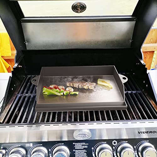 - [ Dual Side Handles for Easy Handling] The plancha grill plate features sturdy handles on both sides, designed for a secure and comfortable grip. You can safely move this universal plancha grill plate between stovetops, outdoor grills, or serving areas, eliminating awkward lifting
