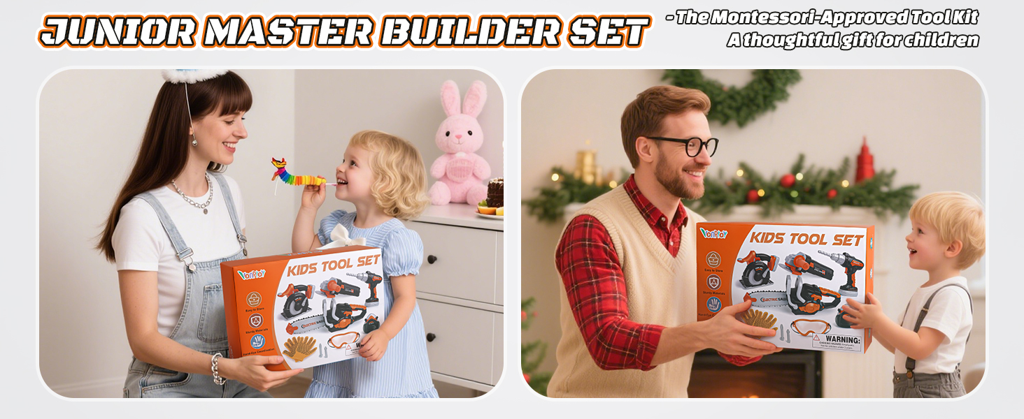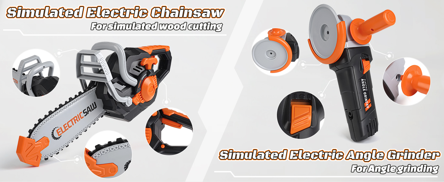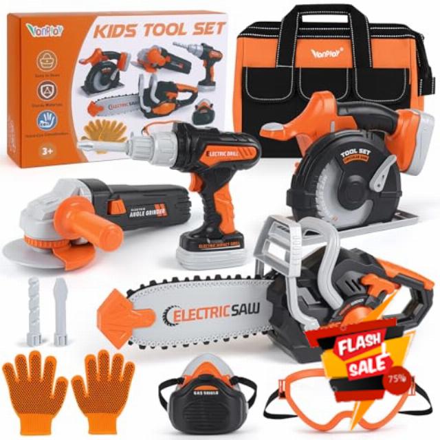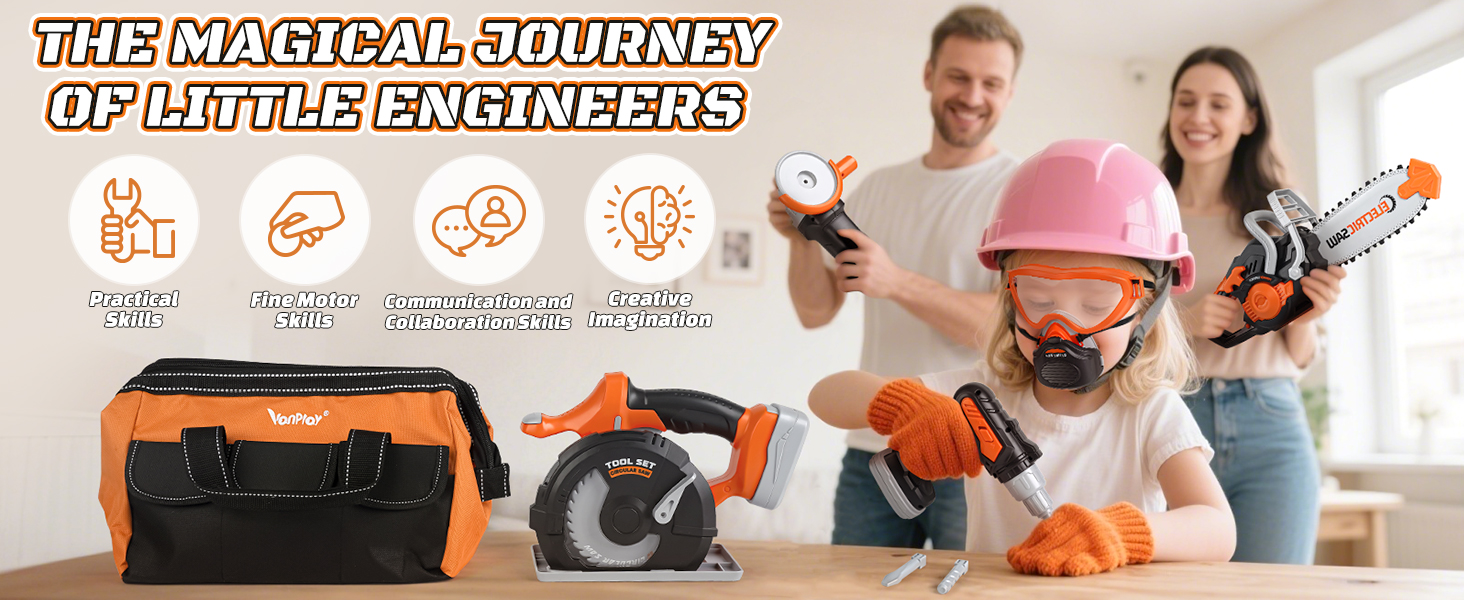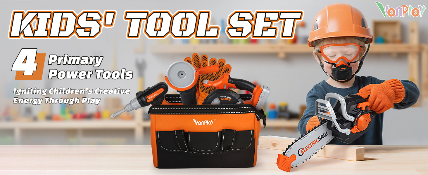 【Complete Kids' Pretend Play Tool Set, Inspires Creativity】Vanplay's Kids Toys Tool includes a full set of simulated electric drills, circular saws, chainsaws, and grinders—perfect for parent-child bonding or group play with friends. It helps children learn how tools work while sparking creativity and imagination.