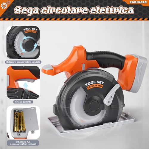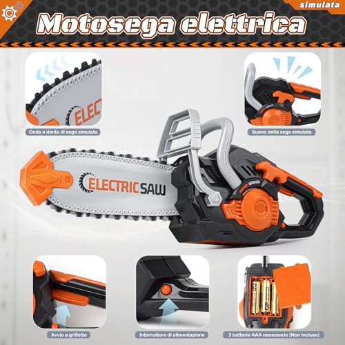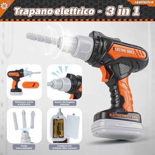 【Realistic Design & Sound Effects for Immersive Play】This tool set requires 9*AA batteries (not included). Once powered, each tool mimics real operation with matching sound effects, offering an engaging pretend play experience that boosts focus and hands-on fun.