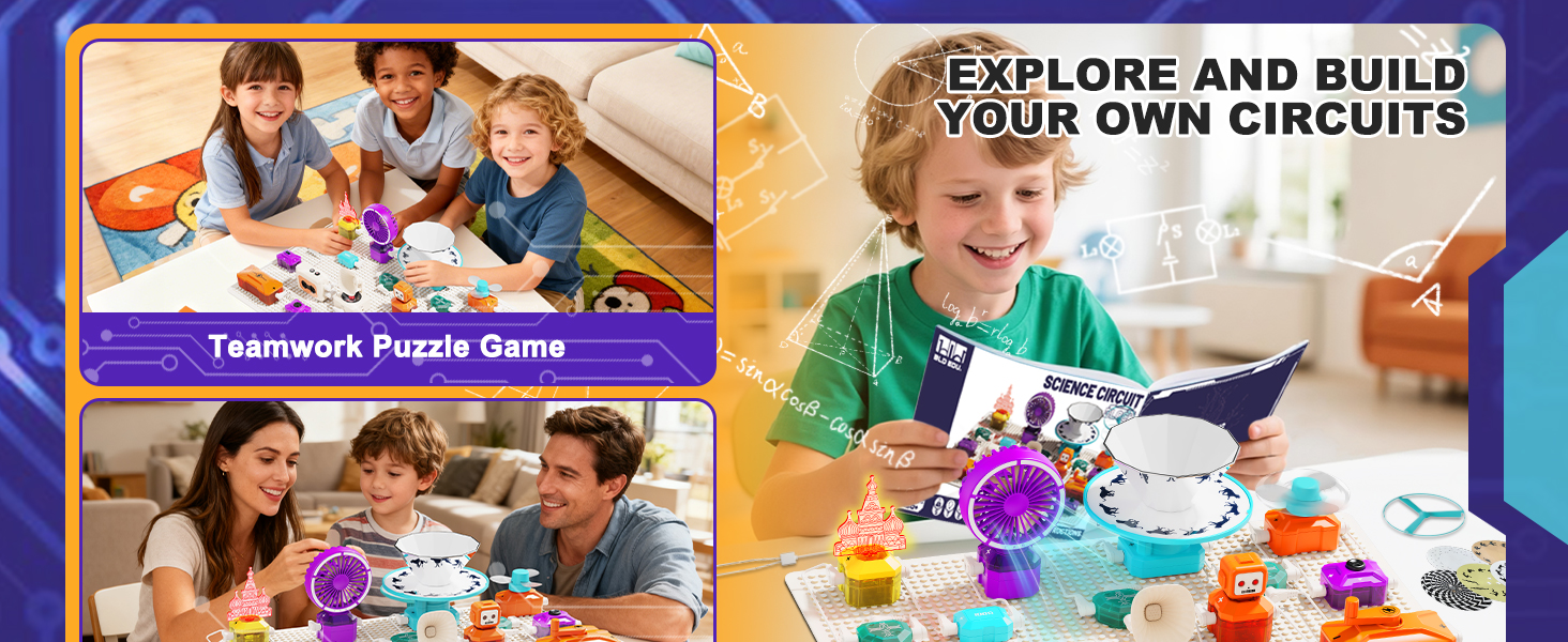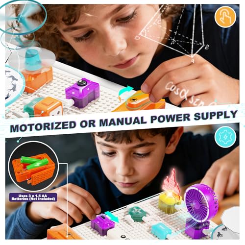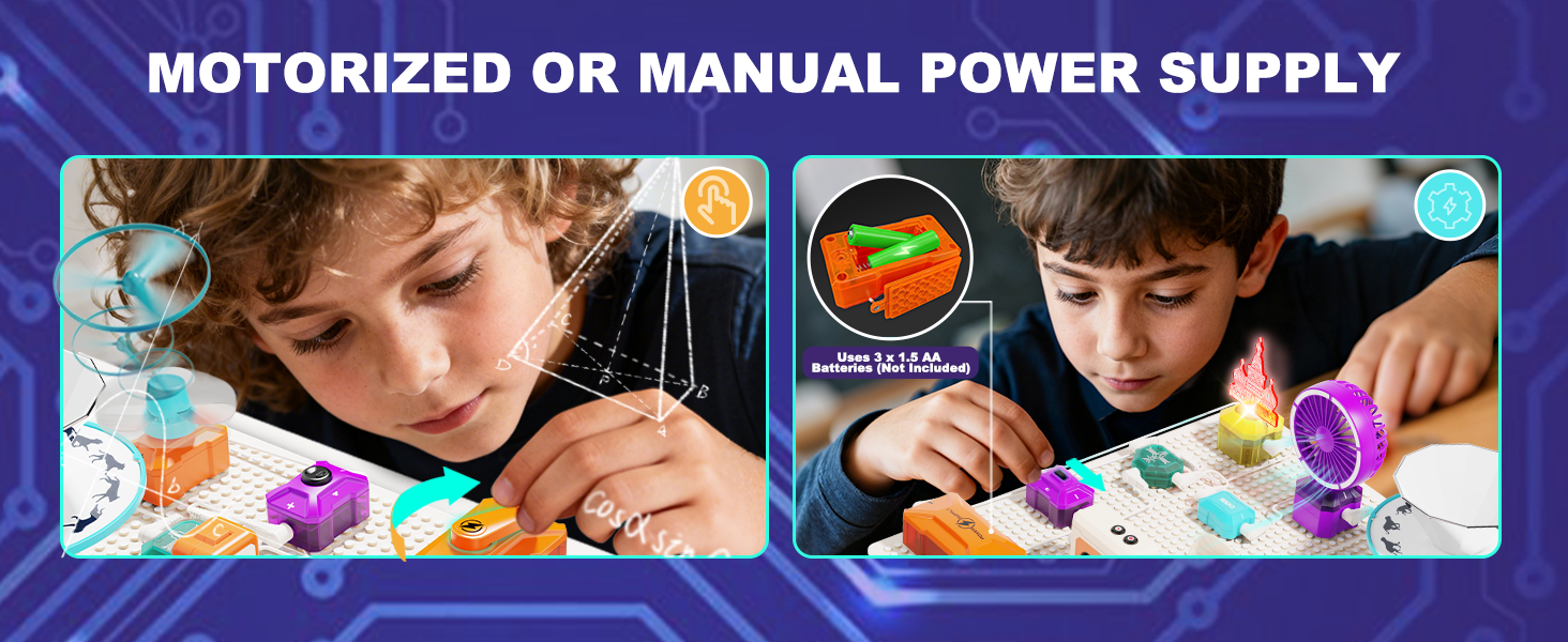 HANDS-ON STEM LEARNING MADE FUN – Build a strong foundation in STEM through interactive play! This educational toy kit includes dual power modes: a standard Power Supply (requires 3 × 1.5V AA batteries, not included) and a Hand-operated Generator to teach energy concepts. Kids intuitively grasp the basics of series/parallel circuits and energy conversion—all while having a blast.