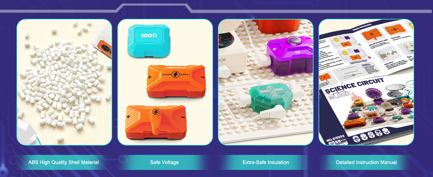 SAFE, ORGANIZED & EASY TO USE – Designed with child safety as a priority, this science circuit kit is made of high-quality ABS material and features fully insulated circuit cables. It comes with 22 circuit cables and 4 four-head converter, making assembly straightforward and secure, so children can focus on creativity and problem-solving with confidence.