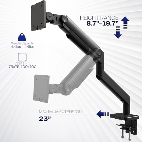- Tension Arm Mount: Premium spring-assist arm counterbalances the weight of your monitor for optimal ergonomic height adjustments. Ideal for gaming setups, this heavy-duty mount repositions large screens at the touch of a hand