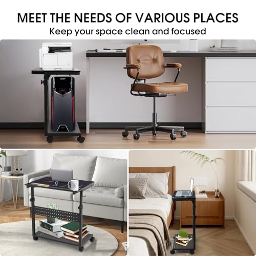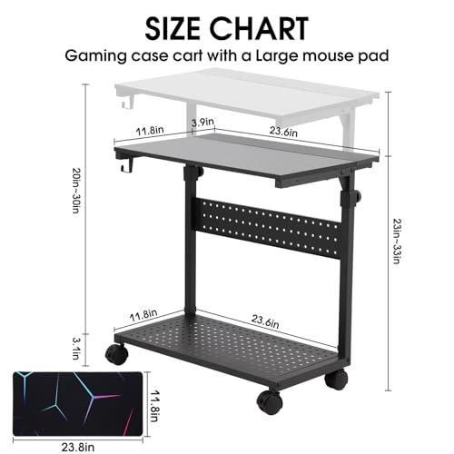 Wider Tower Stand, Height Adjustable Computer Tower Stand for Gaming Home Office, 2-Tier PC Stand Printer Rack ATX-Case CPU Holder Cart with Wheels & Mouse Pad, Black
