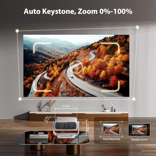 - 【Auto Keystone & 50% Adjustable Size – Effortless Setup & Perfect Fit】Features automatic four-point keystone correction and adjustable projection size, allowing quick setup in any space. Customize the image to fit your environment easily—no fuss, just perfect projection.