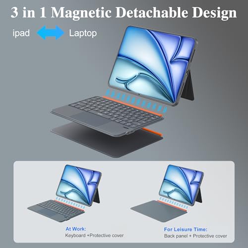Magnetic 3 in 1 Design:Detachable Magnetic Keyboard Case Stand,strong magnets secure stable attachment.Instantly transforms iPad case into a typing keyboard or adjustable viewing stand.Suitable for movies,video calls and meetings.Ideal for office,travel,and outdoor adventures.PU Leather full-edge coverage,protects tablet from drops and scratches
